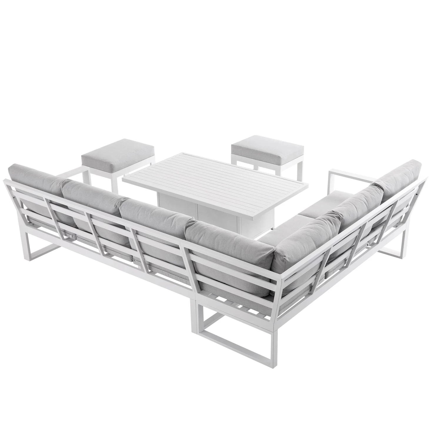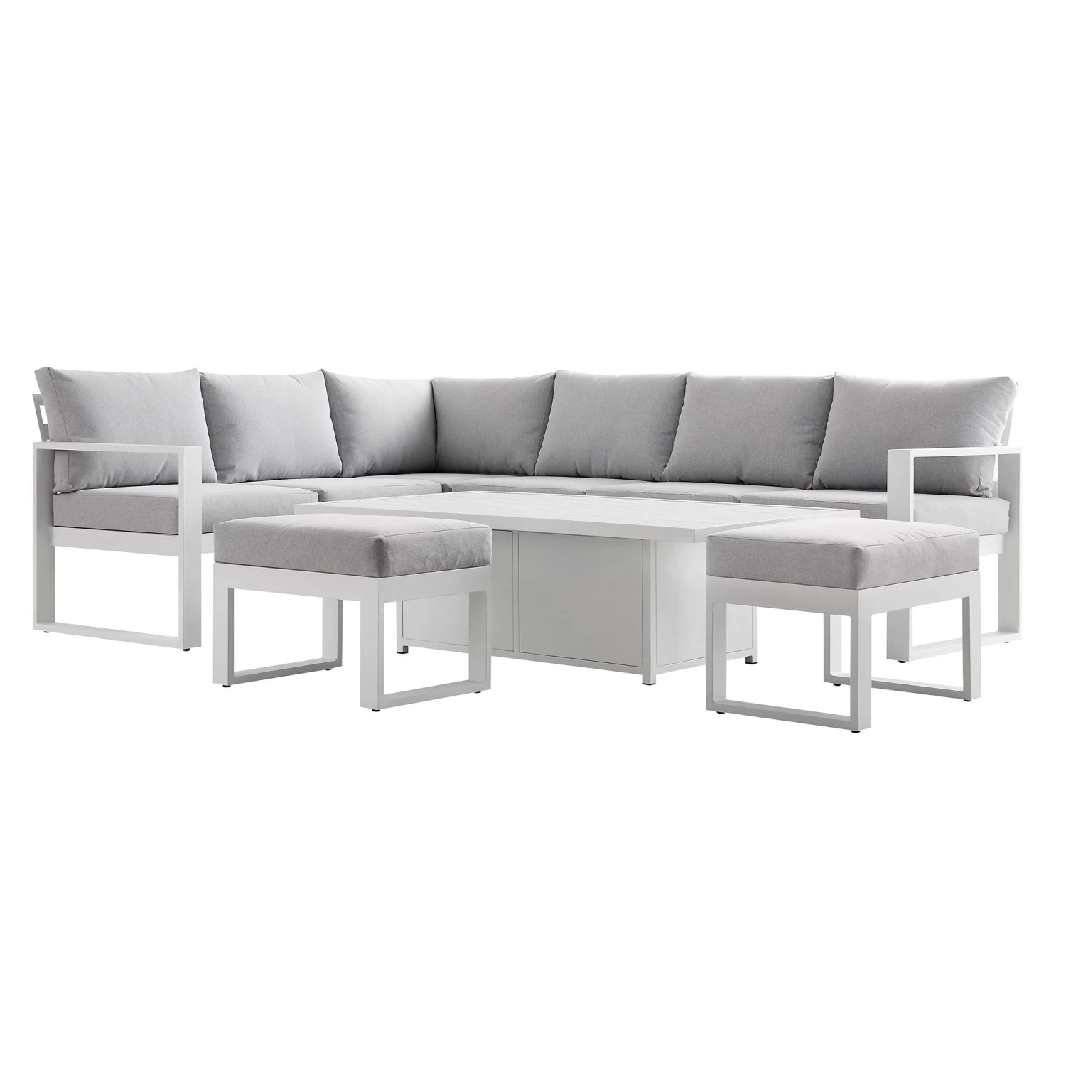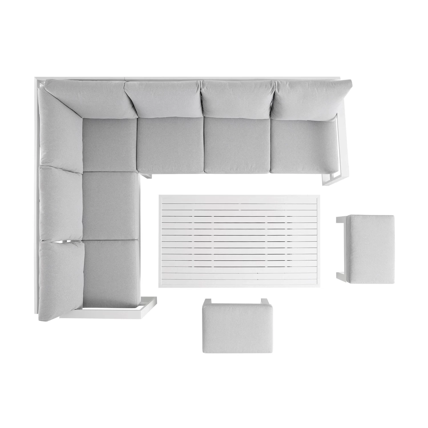 - Comprising of a solid aluminium frame and sumptuous back and seat cushions for added comfort and support, our Albany Large Corner Casual Dining Set is perfect for outdoor gatherings