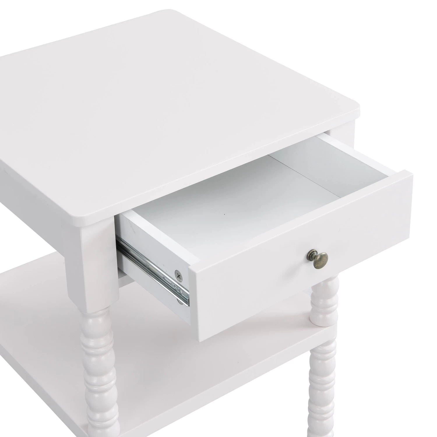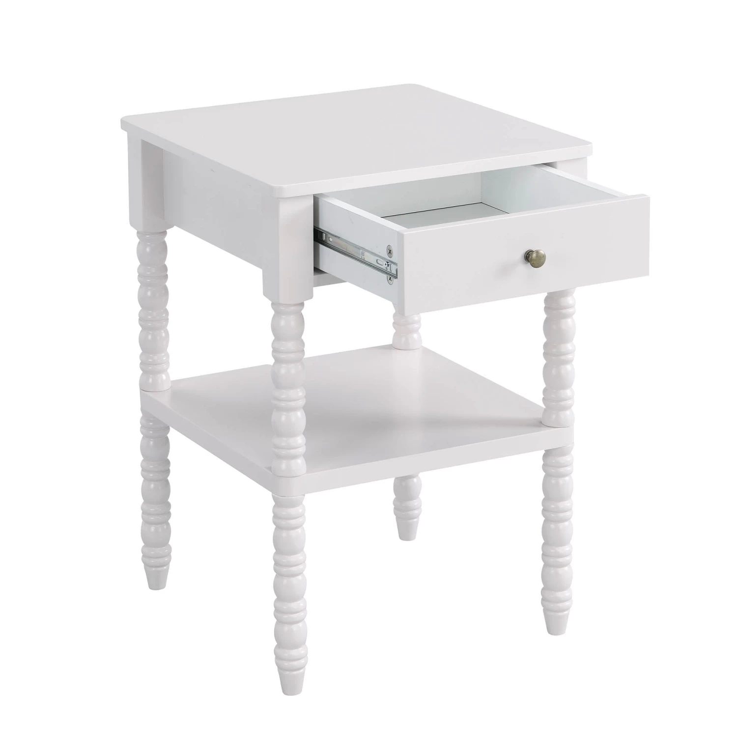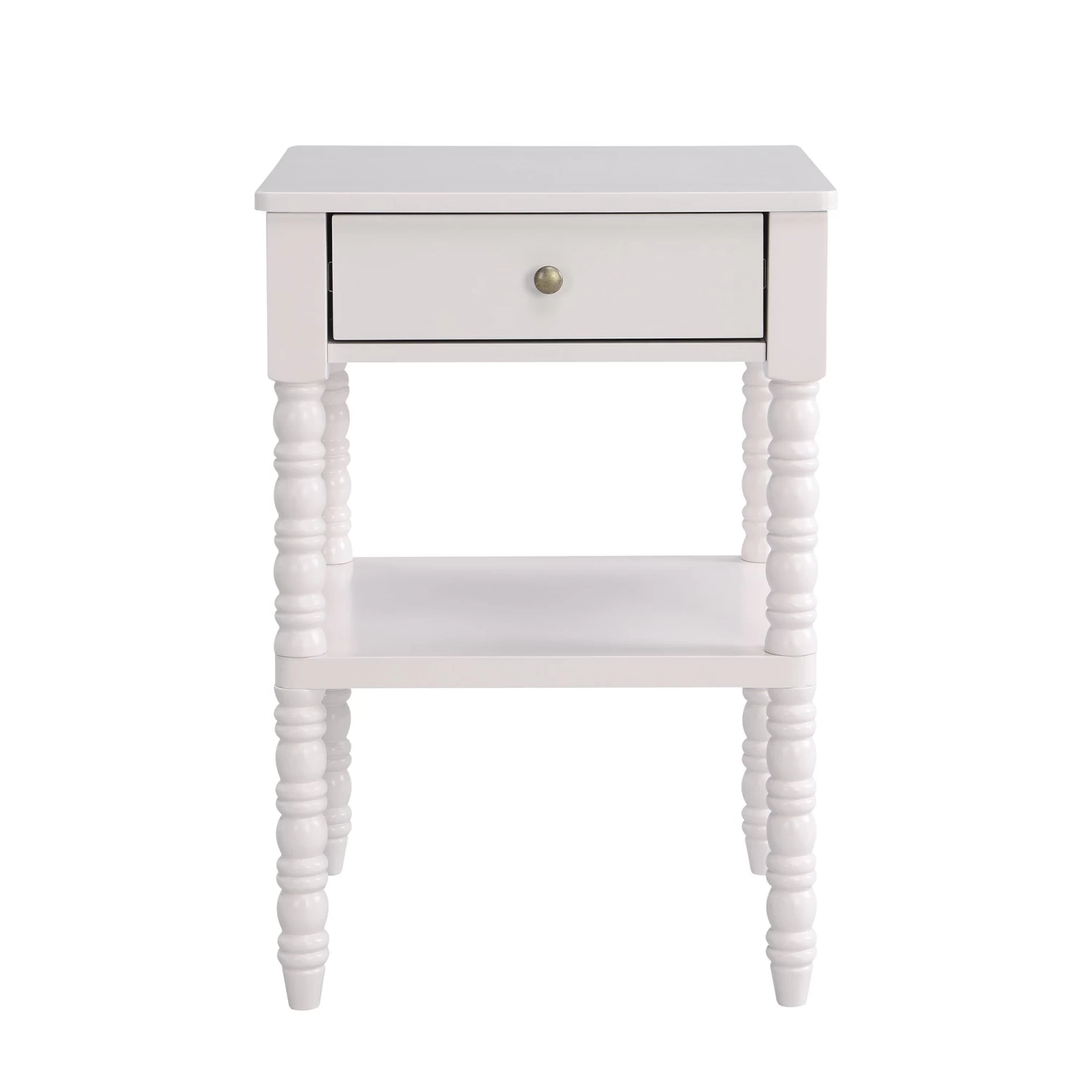 - The table offers 1 drawer and 1 shelf for convenient storage. Rounded edge design makes it both aesthetically pleasing and practical.