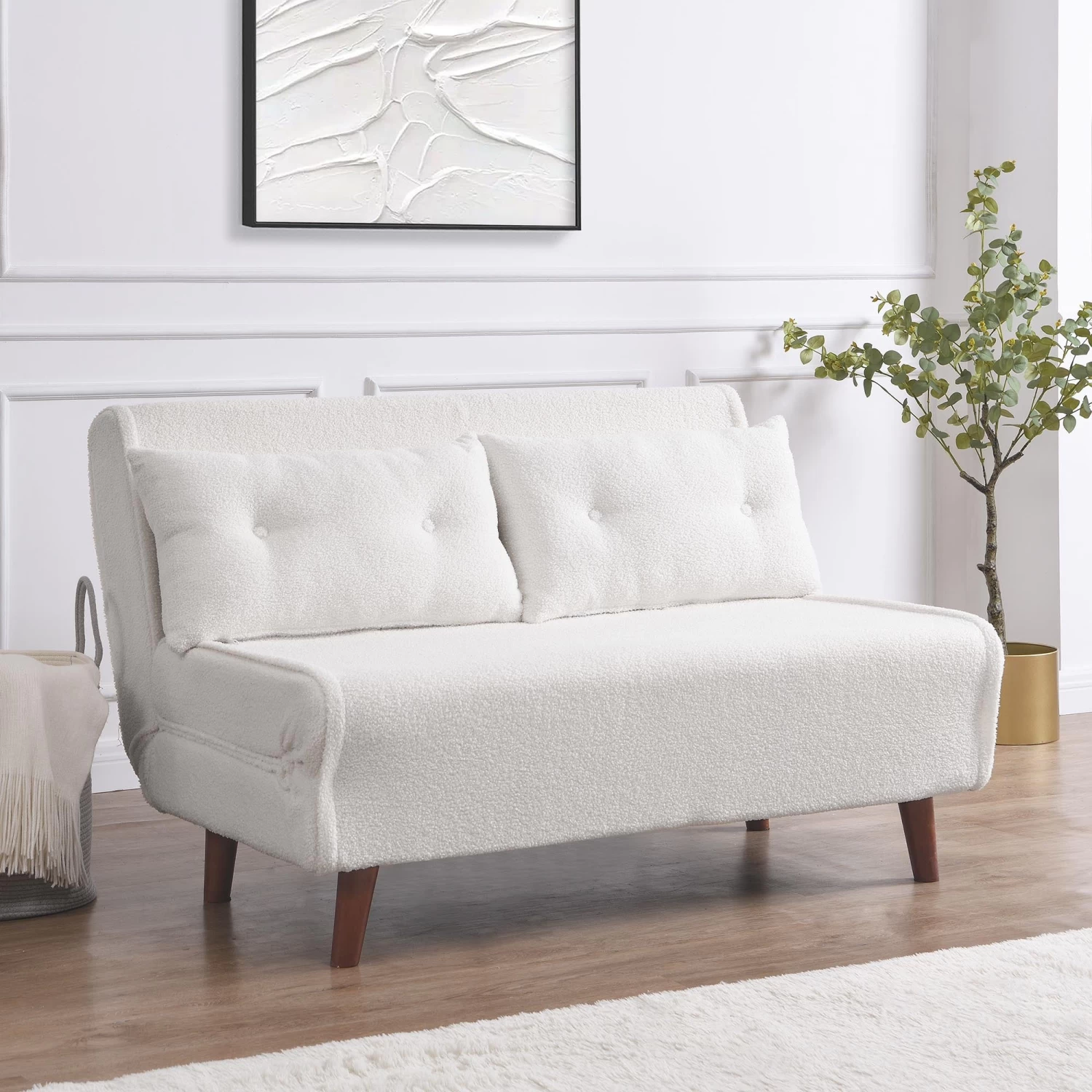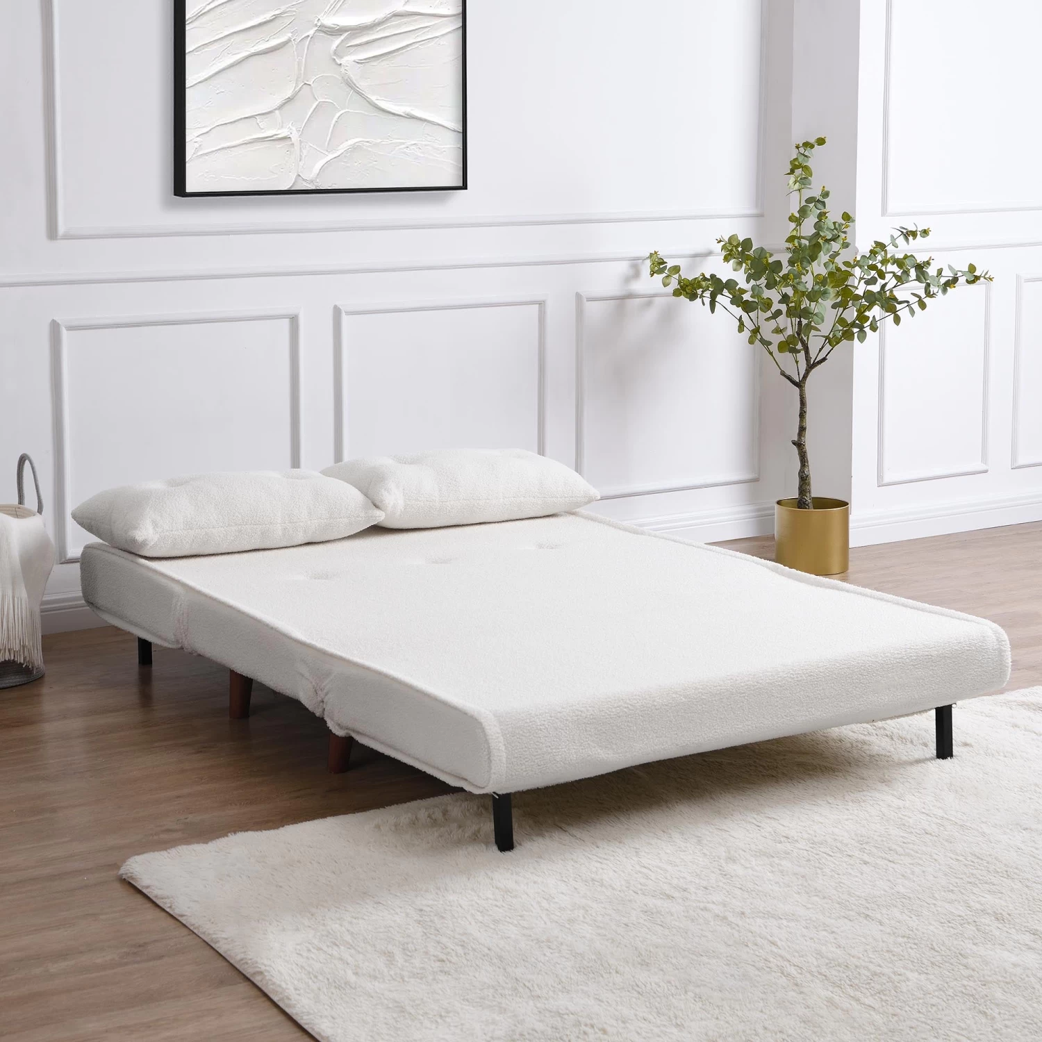 - Upholstered with beautiful velvet fabric in cosy beige colour teddy fabric, the sofa bed is perfect for occasional guest visit while short of spare space or as an accent piece in living room or bedroom.