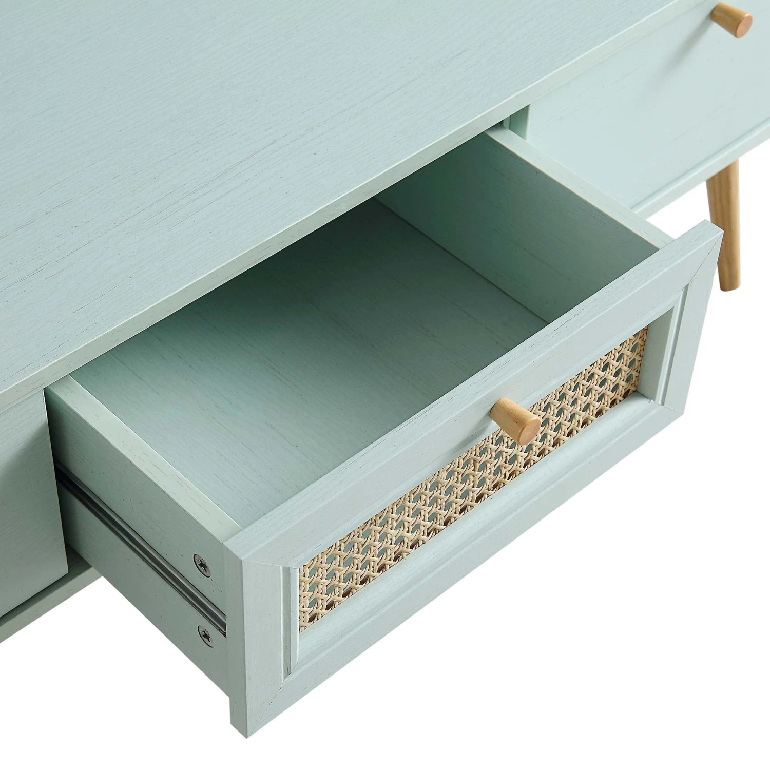 - Our Anya TV unit is characterised by beautiful natural woven rattan drawer front and solid wood drawer handles.