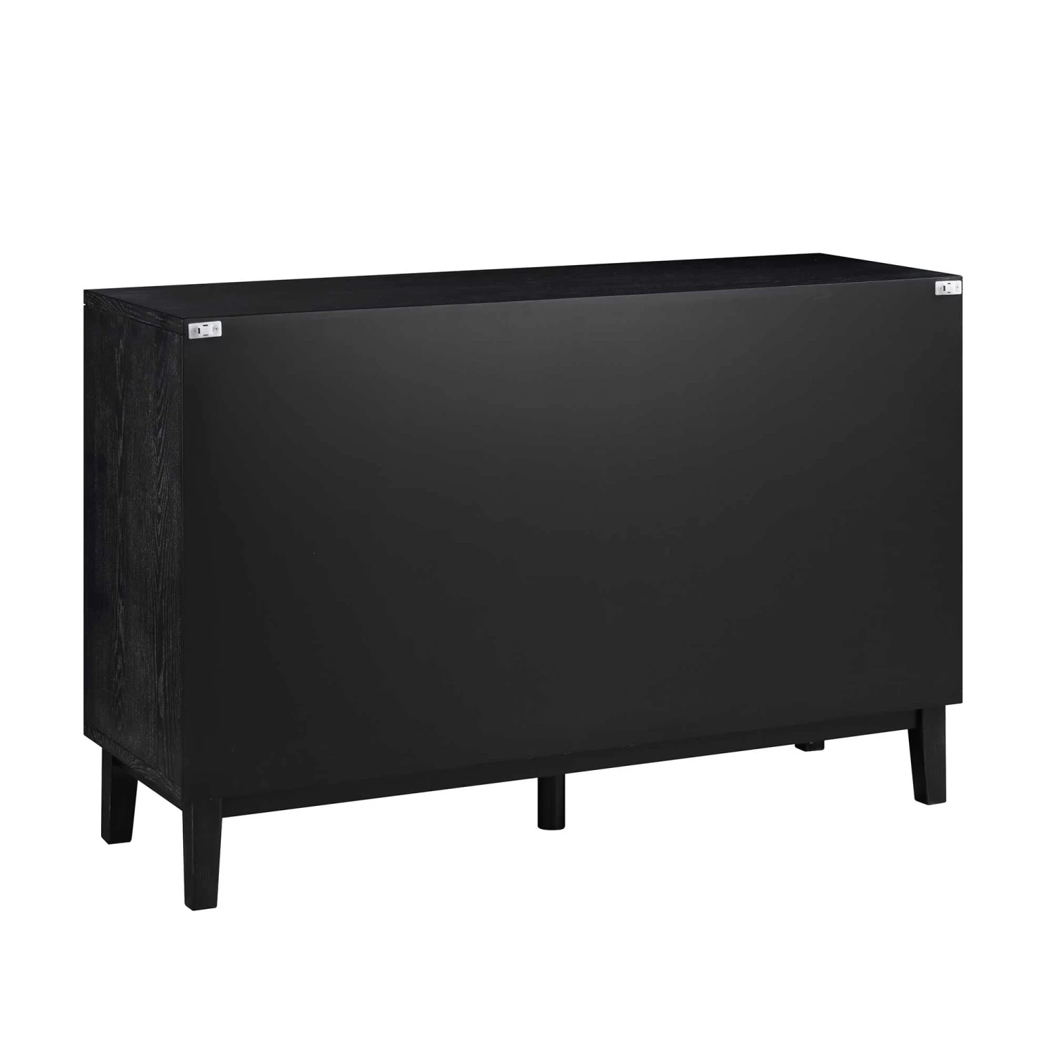 - Boasting modern classic appeal, the cabinet features chip carved drawer fronts in antique bronze colour with black stained wood frame, perfect as a glamorous complement to your bedroom.
