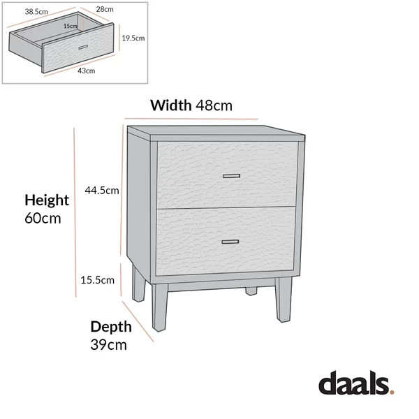 - The 2 drawers provide ample storage space for your bedside essentials, while the spacious top surface is perfect for a lamp, phone, or book.