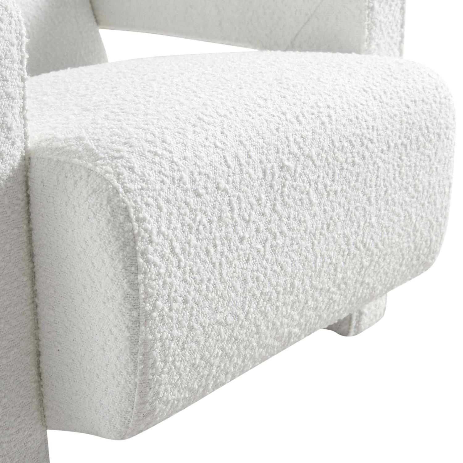 - The chair is upholstered with beautiful textured boucle fabric in white colour, ideal for modern home decor.