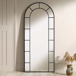 Eden Arched Full Length Metal Frame Mirror 180 X 110 Cm, Black