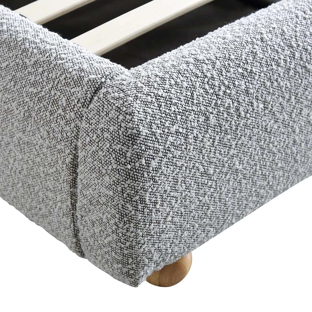 - Our Egerie bed features inviting curved silhouette, upholstered with sumptuous mist grey colour boucle fabric for a chic, cosy place to relax.
