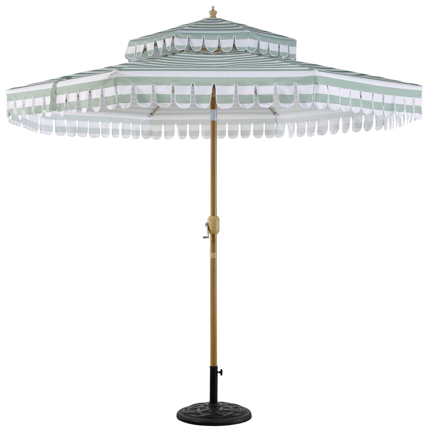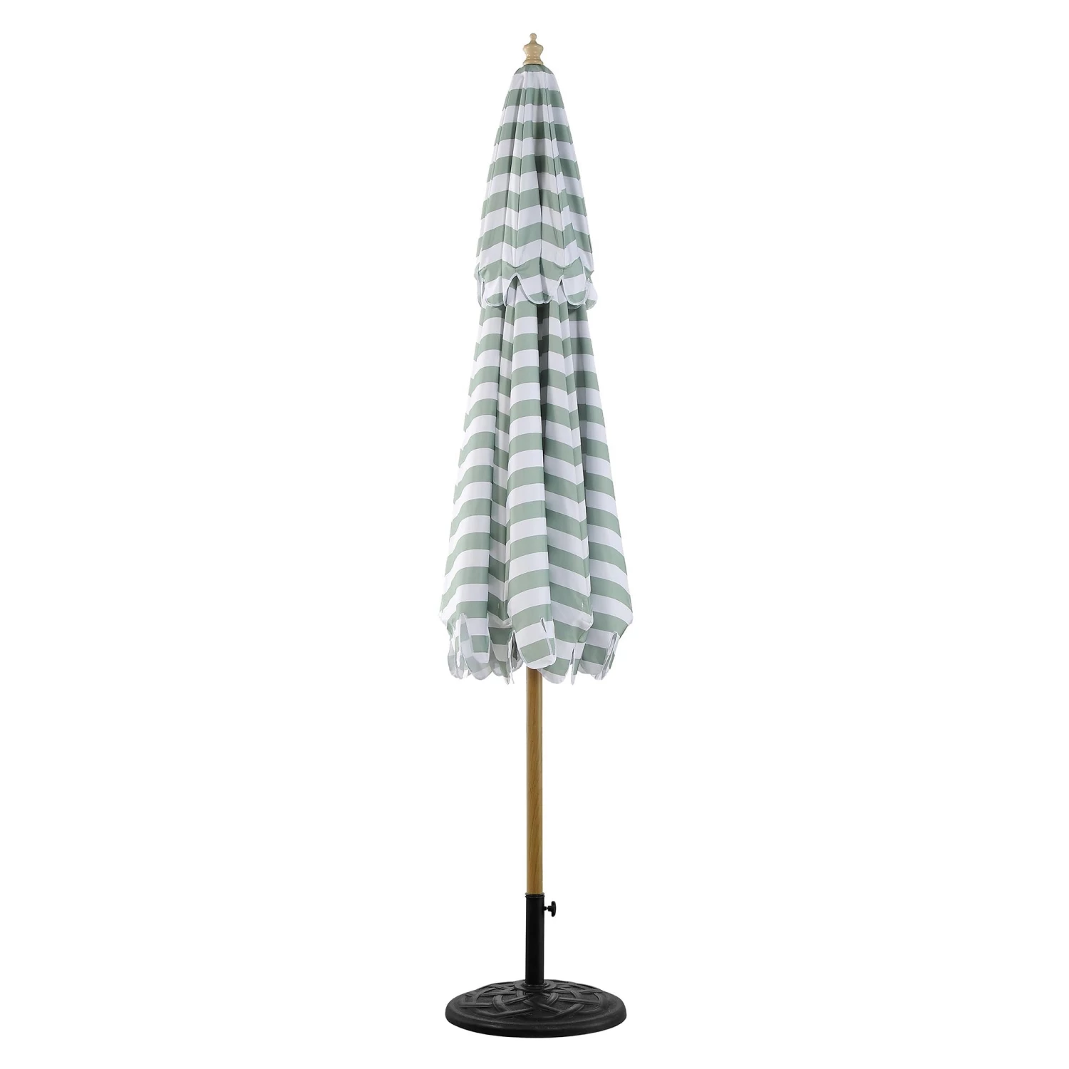 - With an enhanced 3 metre double-top design, our garden parasol has a beautiful sage green and white striped design