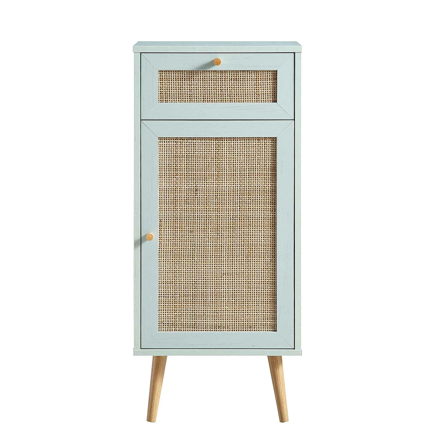 - Complete the look: Pictured with our Frances Woven Rattan 1-Door Cabinet is our matching Frances Woven Rattan 2-Door Bathroom Undersink Unit in Mint Green and our Pollie White Teddy Boucle Storage Stool