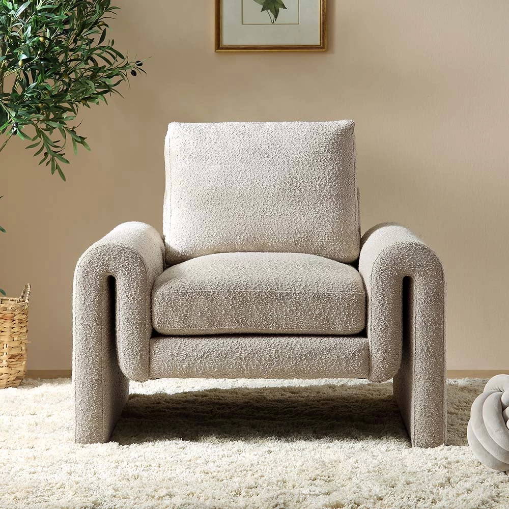 - Reinvigorating modernist style for contemporary homes, our Hampstead armchair features elegant curvilinear silhouette in beautiful textured fabric.