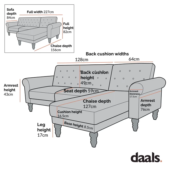 - The chaise can be assembled in either a left-hand or right-hand configuration as required for your space