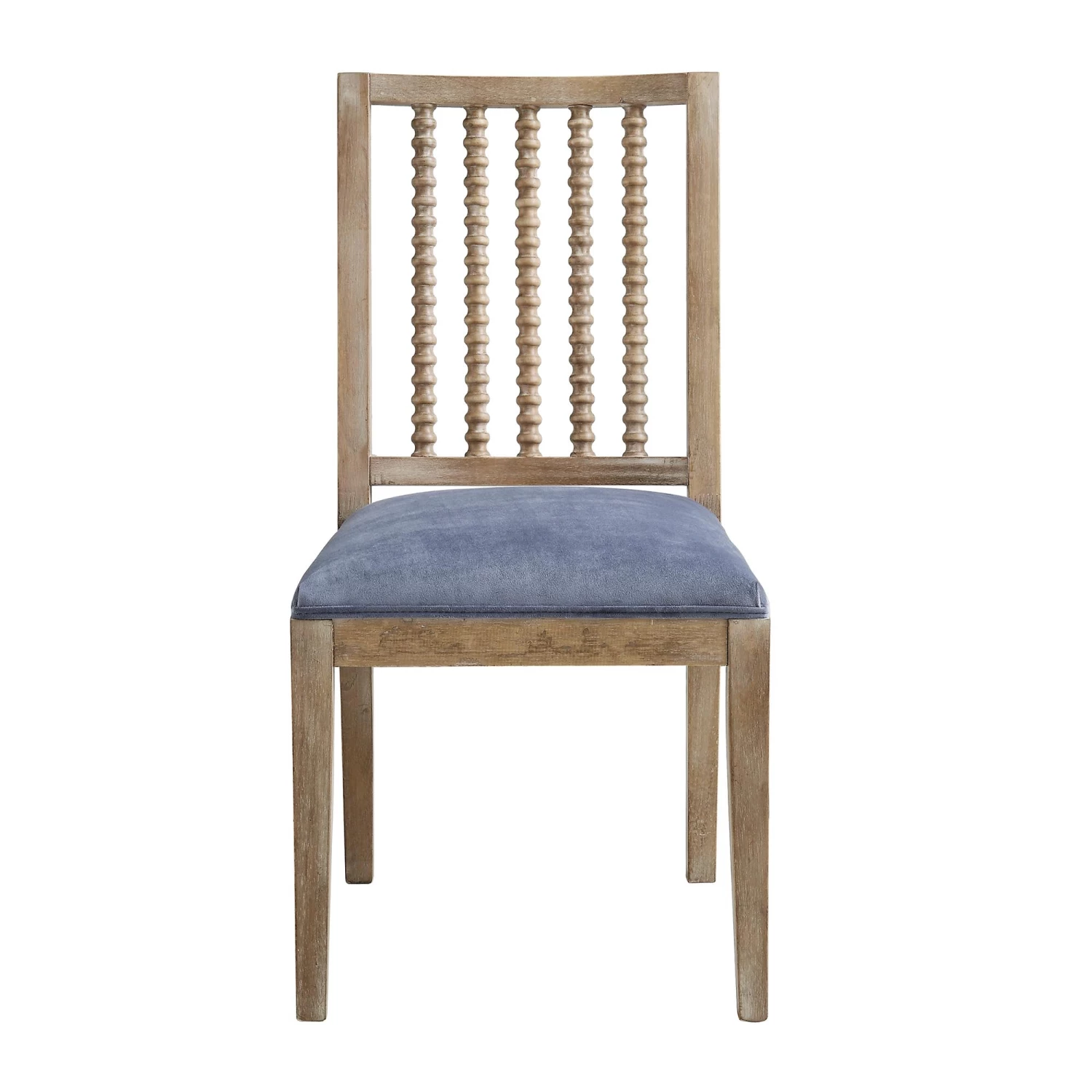 - The chairs have padded seat upholstered with elegant blue grey velvet touch fabric.