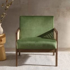 Jeanne Dark Walnut Cane Rattan Solid Beech Wood Counter Stool
