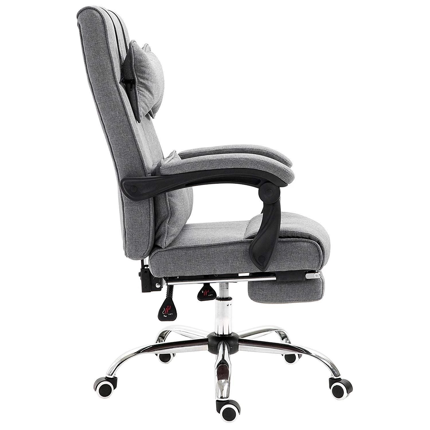 - This ergonomically designed high back office chair is well padded with dense form and upholstered with high quality grey brushed fabric.