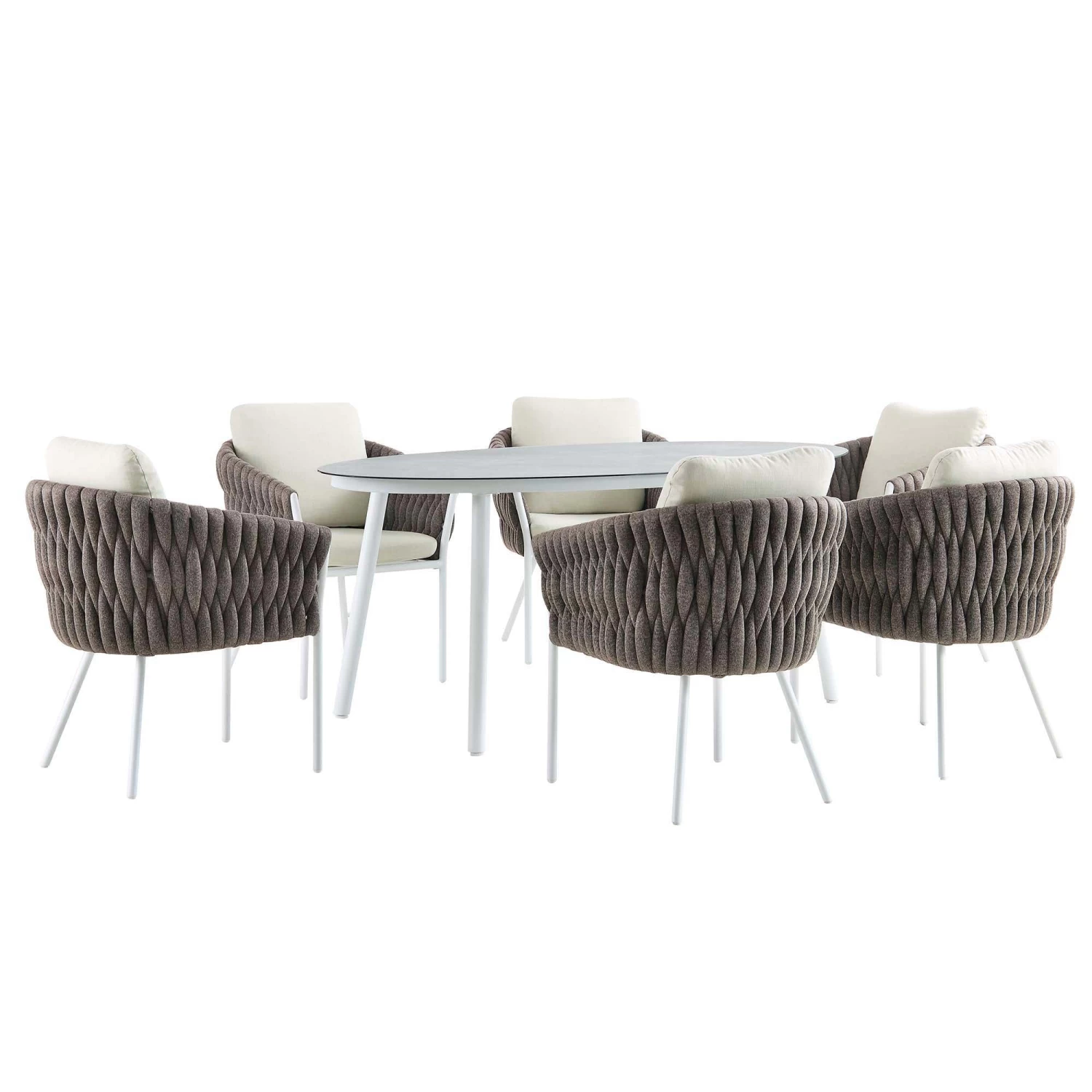 - The Montebello 6-Seater Outdoor Rope and Aluminium Dining Set with Dining Table includes: