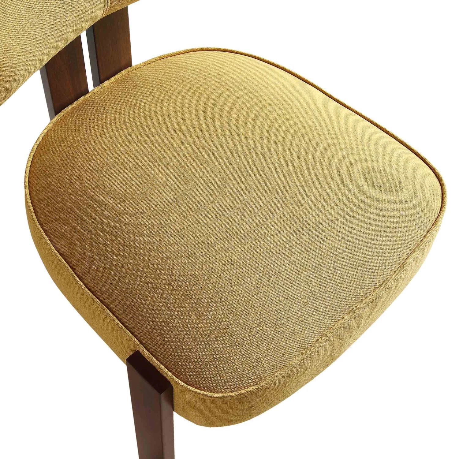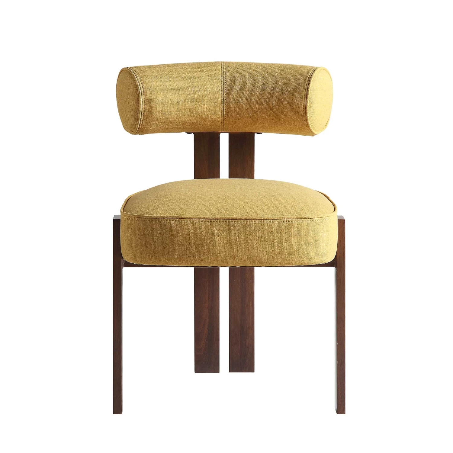 - Upholstered with beautiful yellow fabric matching walnut colour frame, our Ophelia dining chair fits seamlessly in your room to create an inviting dining space.