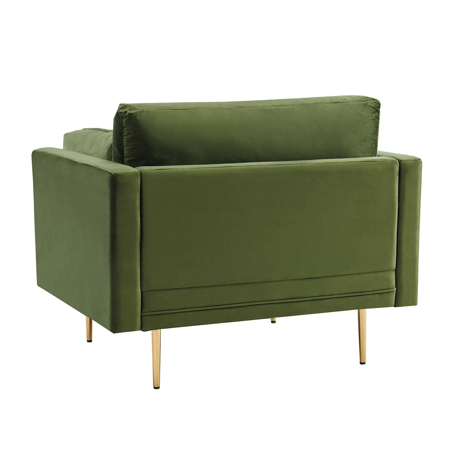 - Add a pop of rich colour to your living space with our Pelham velvet armchair. The stylish profile accented by neatly tailored cushion piping and tapered gold colour legs brings contemporary look to your home.