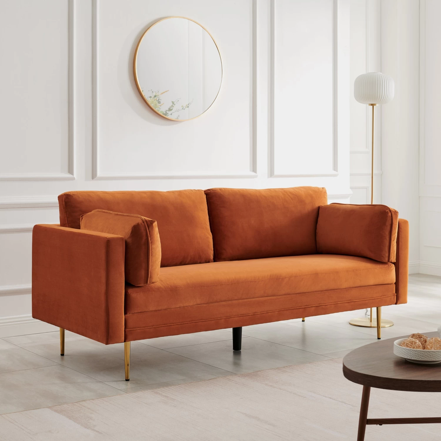 Pelham Orange Velvet Fabric Sofa