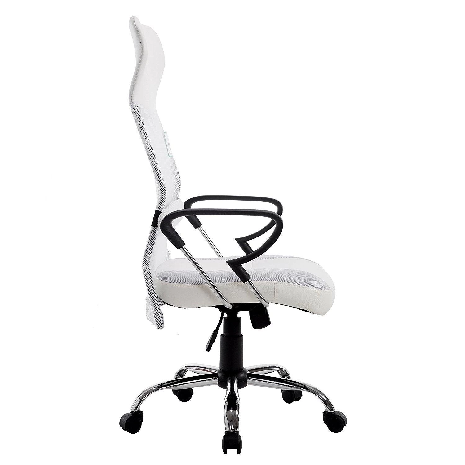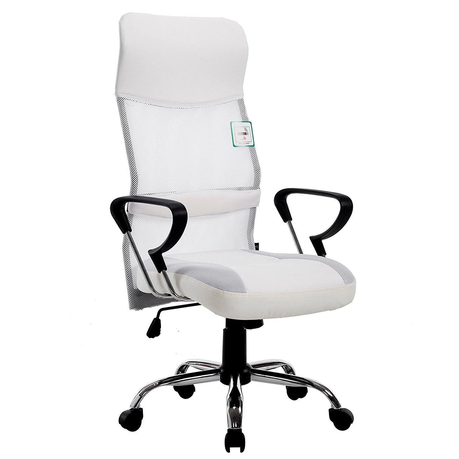 Sleek Design High Back Mesh Fabric Swivel Office Chair With Chrome Base, MO57 White
